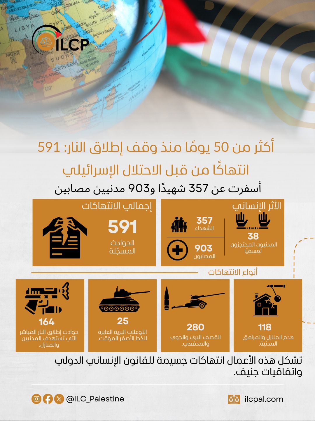 بما في ذلك اتفاقيات جنيف، وتستلزم مسؤولية قانونية دولية تتطلب المساءلة والحماية الفورية للمدنيين.