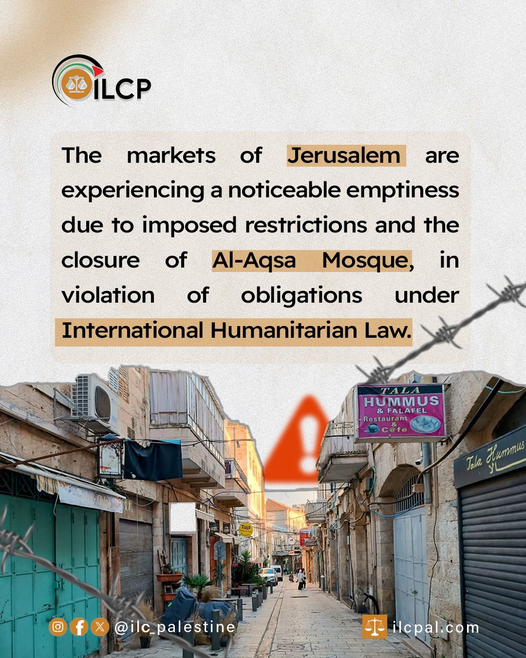 Jerusalem’s markets are experiencing a marked decline in activity due to imposed restrictions and the closure of Al-Aqsa Mosque, constituting a clear violation of obligations under International Humanitarian Law,