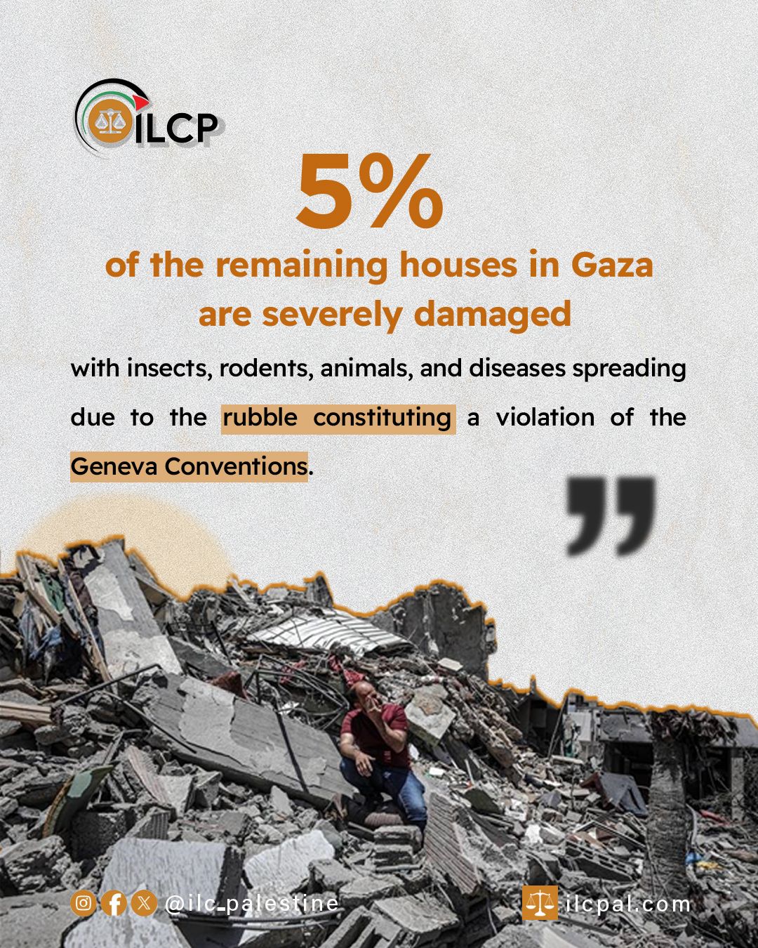 The destruction of what remains of homes in Gaza has left civilians exposed to severe health risks, as rubble becomes a breeding ground for insects, rodents, and disease—constituting a clear violation of the Geneva Conventions and the obligation to protect civilian life and dignity